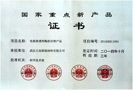 天高熔接電弧熔透焊陶質(zhì)焊接襯墊產(chǎn)品入選國家重點新產(chǎn)品計劃