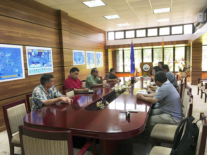 2017年4月6日上午,密聯邦總統(tǒng)克里斯琴會見我援密聯邦客貨兩用船考察組一行。我駐密聯邦大使李杰、政務參贊李翠英、密聯邦總統(tǒng)辦公廳主任LeoFalcam、密外交部部長助理JacksonSoram和經商處負責人徐凡等參加會見?! ∽T祖勝組長代表理工船舶考察組對克里斯琴總統(tǒng)的親自接見表示衷心感謝,并向總統(tǒng)介紹了在雅浦州和丘克州的考察工作情況??死锼骨倏偨y(tǒng)詳細了解我援密兩艘客貨兩用船的現狀、存在問題及成